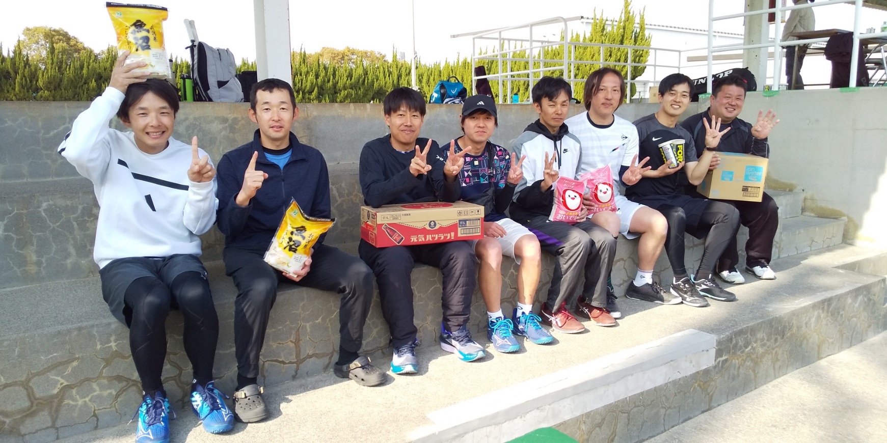 | 男子(左から) 優勝 矢野暎・高見洋平(ローランギャロ) 準優勝 岡地秀篤・濱田兼次(フリー) 3位 杉峯正浩・三木宏隆(Team.Fair) 4位 大西剛平・植木潤一(フリー) |