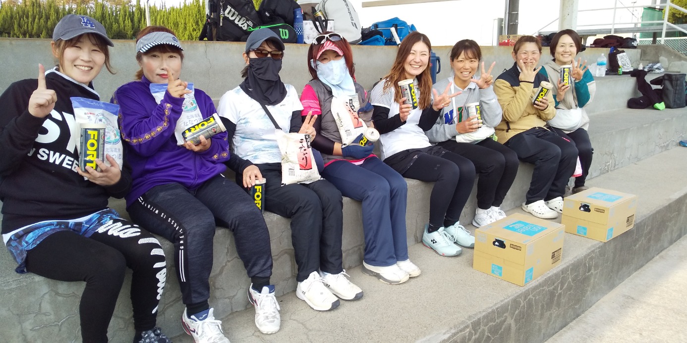 | 女子(左から) 優勝 金木早苗・宮下早由理(ハイブリッジ) 準優勝 西山知香・高橋保江(丸亀グリーン) 3位 岡田彩奈・古市亜由美(ローランギャロ) 4位 林和代・佐伯安弥(フリー) |